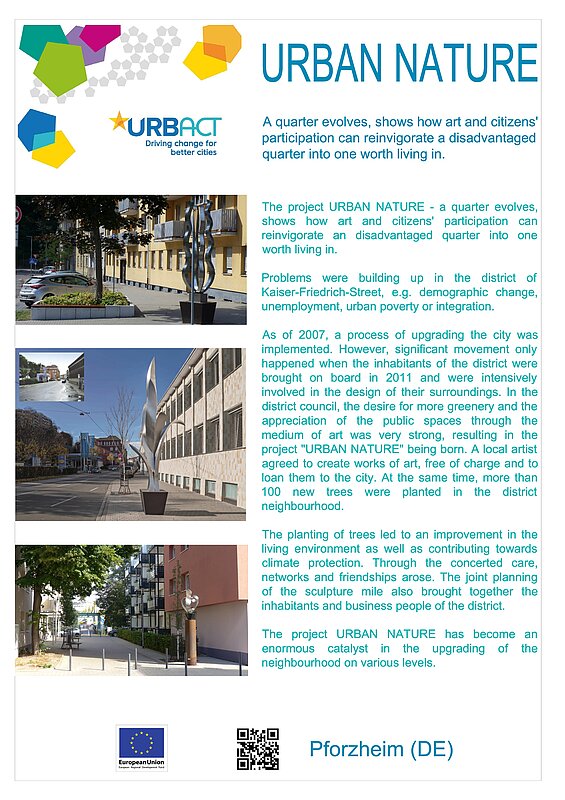 Zahlreiche weitere Projekte wurden durchgeführt, um den Klima- und Naturschutz u. a. an Schulklassen weiter zu geben. Unter dem Slogan „Urban nature“ fanden Angebote mit dem Anglerverein und einer Imkerei statt, ein Baumlehrpfad wurde eingerichtet und jede größere Begrünungsmaßnahme öffentlich bekannt gemacht. Selbst die Skulpturenmeile nahm sich die Natur zum Vorbild und setzte die Motive der Natur in Kunst um. Damit wurde auch ein Beitrag einem positiven Image dieses Stadtteils geleistet.