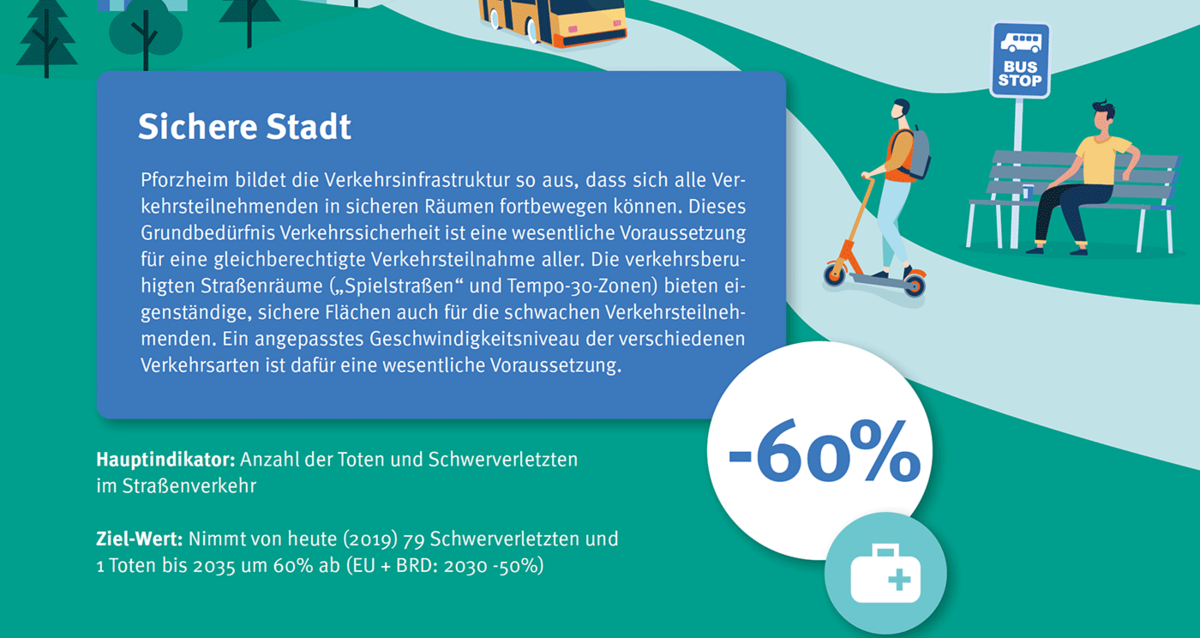 Pforzheim bildet die Verkehrsinfrastruktur so aus, dass sich alle Verkehrsteilnehmenden in sicheren Räumen fortbewegen können. Dieses Grundbedürfnis Verkehrssicherheit ist eine wesentliche Voraussetzung für eine gleichberechtigte Verkehrsteilnahme aller.