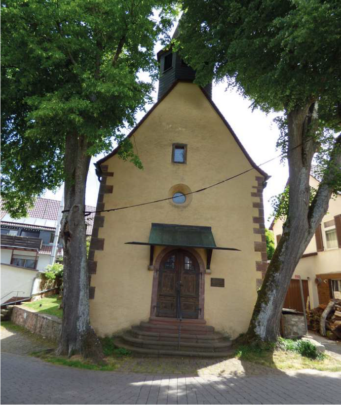 Spätgotischer Saalbau mit dreiseitigem Chorschluß. 1728 wurde das Langhaus verlängert. Ab 1741 erhielt der Innenraum seine barocke Ausstattung, zu der auch die älteste Barockorgel Nordbadens von 1734 gehört. In den Jahren 1978/80 erfolgte eine Gesamtrenovierung und Freilegung der historischen Ausmalung.