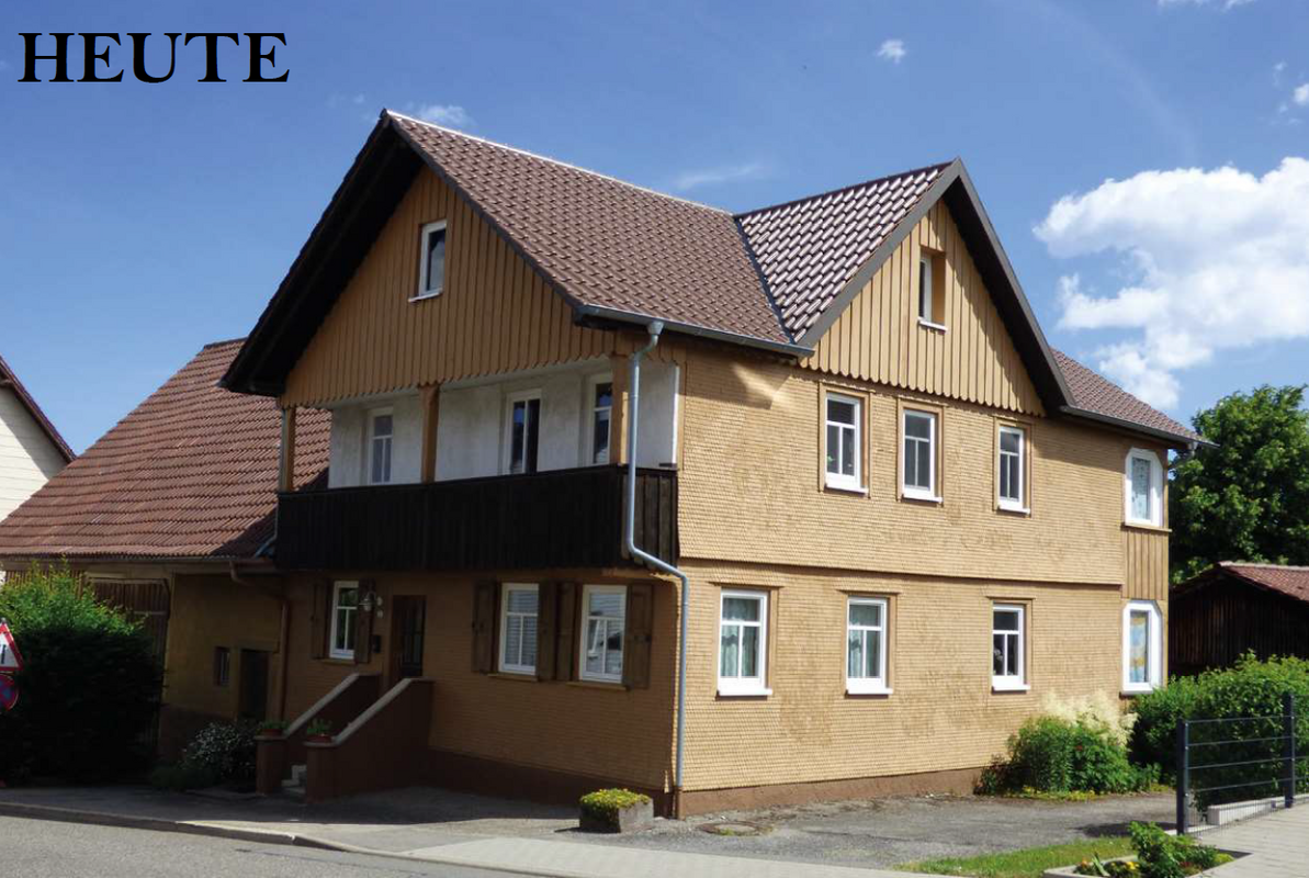 Der angebaute stattliche Scheunenteil ist im Herbst 2002 eingestürzt. Das Wohnhaus wurde vor einigen Jahren mit einer Boden- Deckelschalung neu verkleidet.