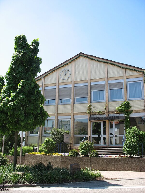 Im Jahr 1936 baute man die ehemalige Lehrerwohnung im Obergeschoss des Rathauses zu Arbeitszimmern für die Gemeindeverwaltung um. 1962 schätzt man den Zustand des Verwaltungsgebäudes in Huchenfeld als sehr schlecht ein. Verschiedene Pläne zum Umbau und zur Erweiterung des Rathauses wurden erarbeitet. Schließlich entschied man sich für einen Neubau. Das neue Rathaus wurde am 27. September 1968 eingeweiht.
