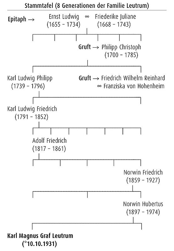 Deshalb bestellte der Würmer Lehnsherr Ernst Friedrich I. (1616-1703), Vater von Ernst Ludwig (1655-1734), den Öschelbronner Pfarrer und besoldete ihn. Aus der Perspektive der Altstadtpfarrei war das eine Anmaßung bzw. ein Außerkraftsetzen ihrer angestammten Rechte als Mutterkirche. Ernst Friedrich Leutrum fühlte sich jedoch im Recht und berief sich darauf, dass durch den Erwerb der Hirsauer Besitzungen im Jahr 1534 auch das Kirchenrecht in Würm auf die Familie Leutrum übergegangen sei. Aus demselben Grund war Ernst Friedrich Leutrum auch nicht bereit, Kirchenvisitationen aus Pforzheim zuzulassen. Ein Ausdruck seines diesbezüglichen religiösen und dynastischen Selbstverständnisses und seiner „reichsunmittelbaren“ Existenz war sicher die Wahl der Grablege in der Würmer Kirche. Mit den Bestattungen in Würm, die urkundlich seit 1659 nachgewiesen sein, folgten die Leutrum den neuen repräsentativen Bestattungsformen, die auch andere fürstliche Familien – in Pforzheim z. B. ist das Hochgrab von Markgraf Ernst und seiner Gemahlin Ursula das älteste fürstliche Grabdenkmal im Stiftschor der Schlosskirche – an ihren Residenzorten wählten.