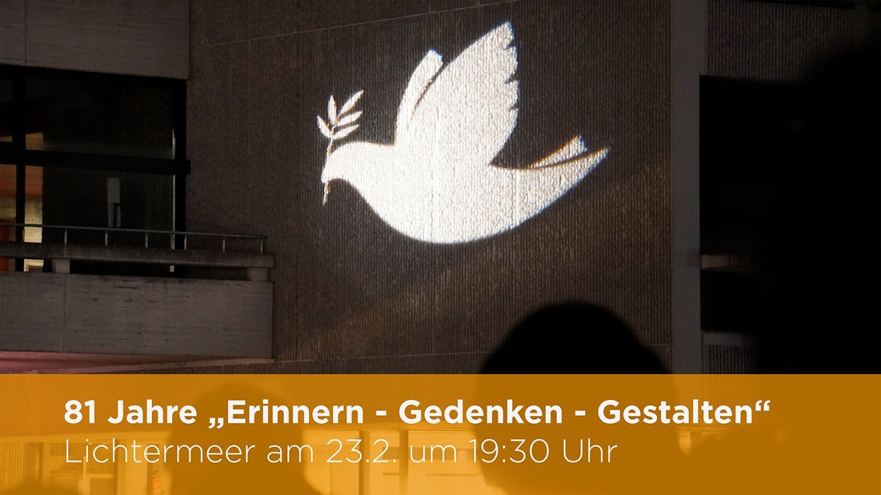 Ansprache des Oberbürgermeisters Peter Boch mit anschließendem Interreligiösen Segen von Vertreterinnen und Vertretern der Glaubensgemeinschaften. Umrahmt mit Musik, dem traditionellen "Lichtermeer" sowie einer Projektion mit Bildern des zerstörten Pforzheims.