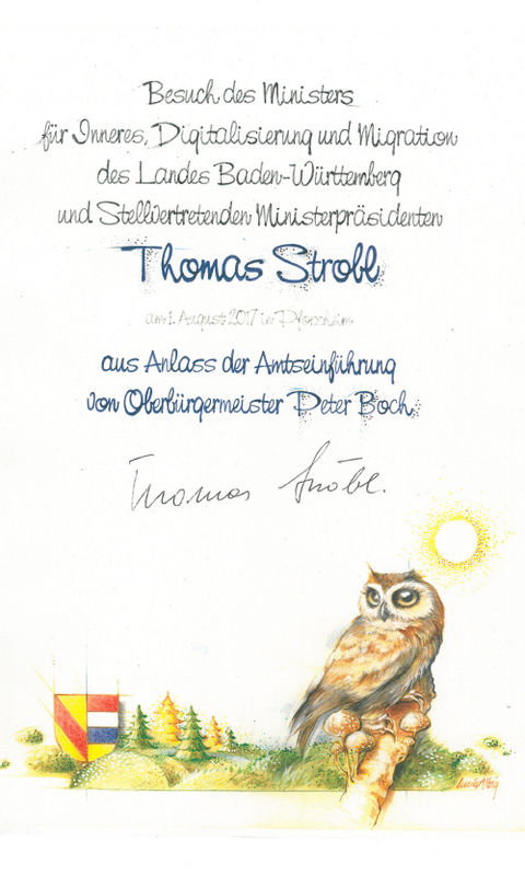 01.08.2017 Besuch des Ministers für Inneres, Digitalisierung und Migration des Landes Baden-Württemberg und Stellvertretenden Ministerpräsidenten Thomas Strobl, anlässlich der Amtseinführung von Oberbürgermeister Peter Boch