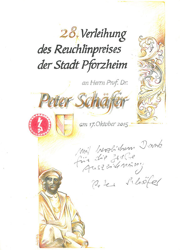 Besuch von Herrn Prof. Dr. Peter Schäfer wegen Verleihung des 28. Reuchlin-Preises