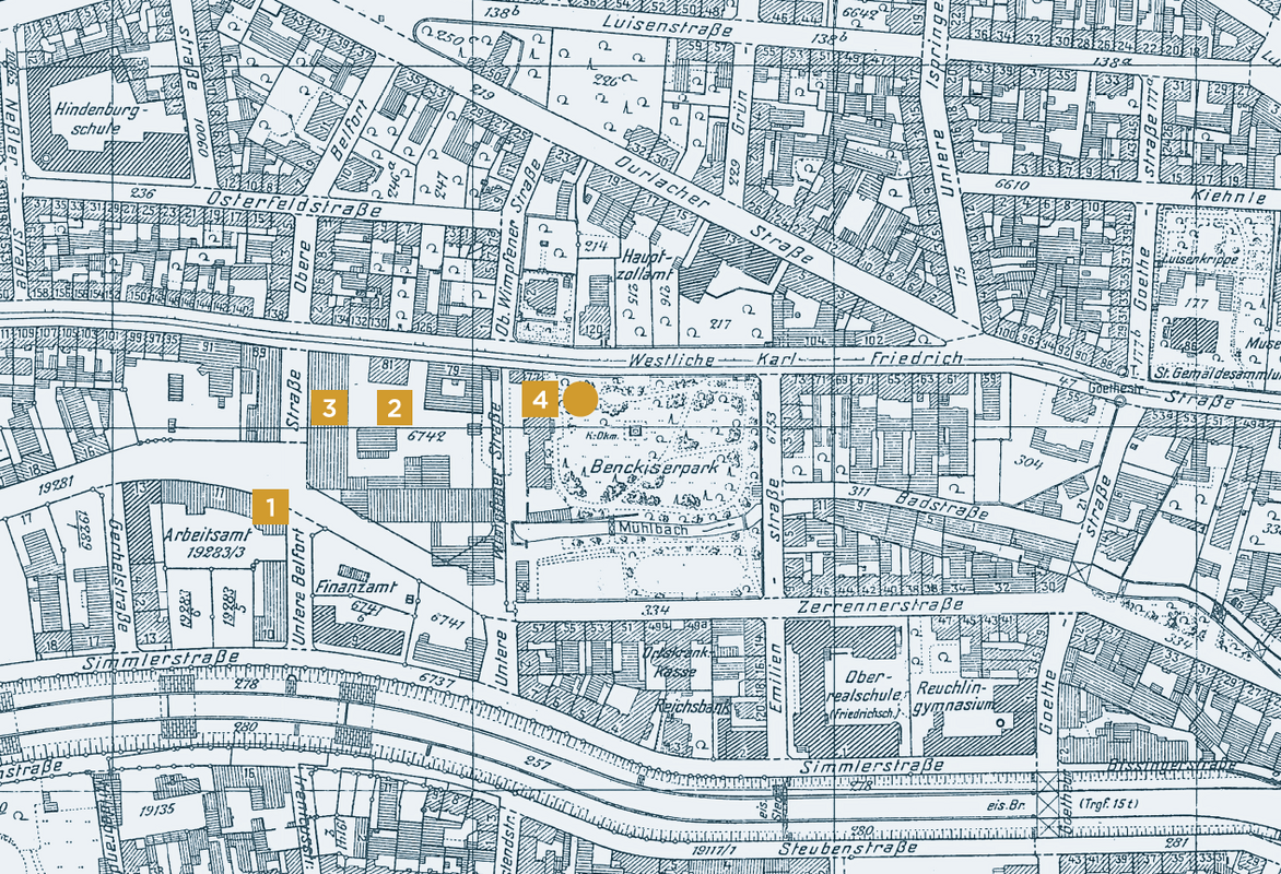 Der Benckiserpark ging aus dem spätbarocken Privatgarten der Villa Benckiser hervor. 1918 schenkte die Familie Benckiser ihren Garten der Stadt unter der Bedingung, ihn dauerhaft als öffentliche Grünanlage zu erhalten. Der zierliche Benckiserbrunnen wurde 1875 als Einzelstück im benachbarten Eisenwerk für den heutigen Standort gegossen. Er erinnert an die damals gebaute Grösseltal-Wasserleitung, die die Stadt bis heute zuverlässig mit Trinkwasser versorgt.
