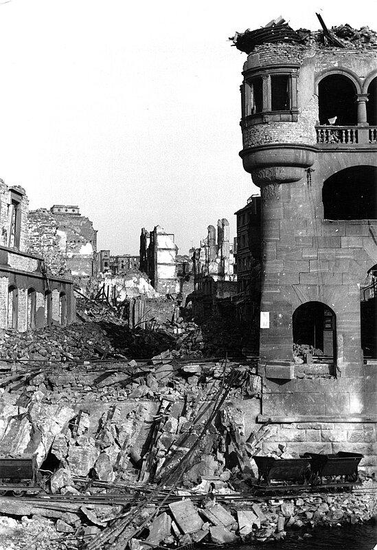 Beim Luftangriff vom 23. Februar 1945 wurden sämtliche Gebäude rund um die Roßbrücke zerstört. Die Roßbrücke fiel im April 1945 einer sinnlosen Sprengung durch deutsche Truppen zum Opfer.