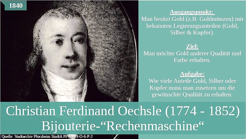 In Handel, Verwaltung, Ingenieurswesen und vielen anderen Bereichen ist die Mathematik und das damit verbundene Rechnen eine Herausforderung. Heutzutage ist die Verwendung von Taschenrechnern, sowie Computern und Excel eine Selbstverständlichkeit. Diese "Rechenhilfsmittel" stehen jedoch noch nicht allzu lange zur Verfügung. Um zu erfahren wie in der Vergangenheit gerechnet wurde, spazieren wir durch die Entwicklungsgeschichte entsprechender Rechengeräte. Bei dieser Wanderung werden wir auch Protagonisten aus der Pforzheimer Umgebung begegnen, die Beiträge zum Rechnen in der Zeit vor den Computern geleistet haben. Außerdem werden wir einige mechanische Rechenmaschinen vorstellen, die in der Pforzheimer Verwaltung eingesetzt wurden.