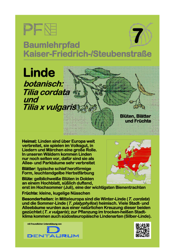 in Mitteleuropa sind die Winter-Linde (Tilia cordata) und die Sommer-Linde (Tilia platyphyllos) heimisch. Viele Stadt- und Alleebäume wurden aus einer natürlichen Kreuzung dieser beiden gezüchtet (Tilia x vulgaris); zur Pflanzung im trocken-heißen Stadtklima kommen auch südosteuropäische Lindenarten (Silber-Linde).