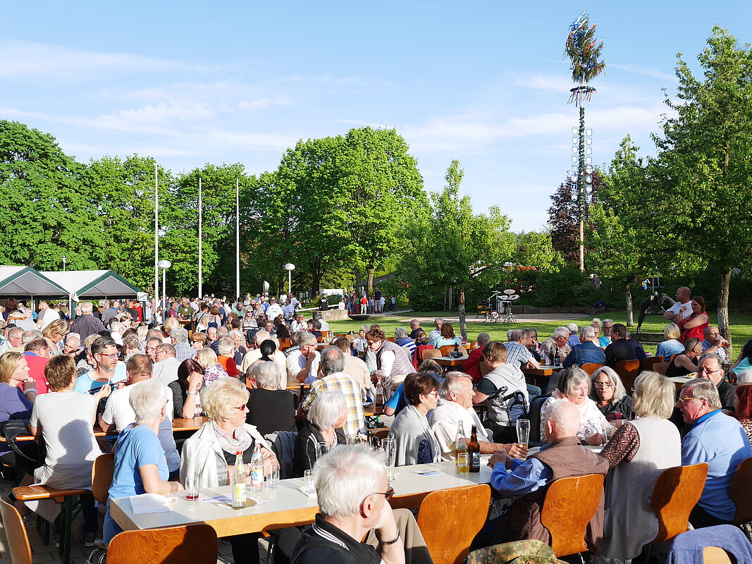 Gegen 18 Uhr Maibaumaufstellung durch Freiwillige Feuerwehr und örtlichen Bauhof
