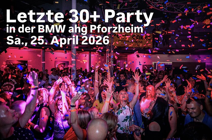 Die letzte Ü30 in der BMW ahg! Am Samstag, den 25. April, feiern wir gemeinsam den Abschied der 30+ Party in ihrer beliebtesten Location in Pforzheim!