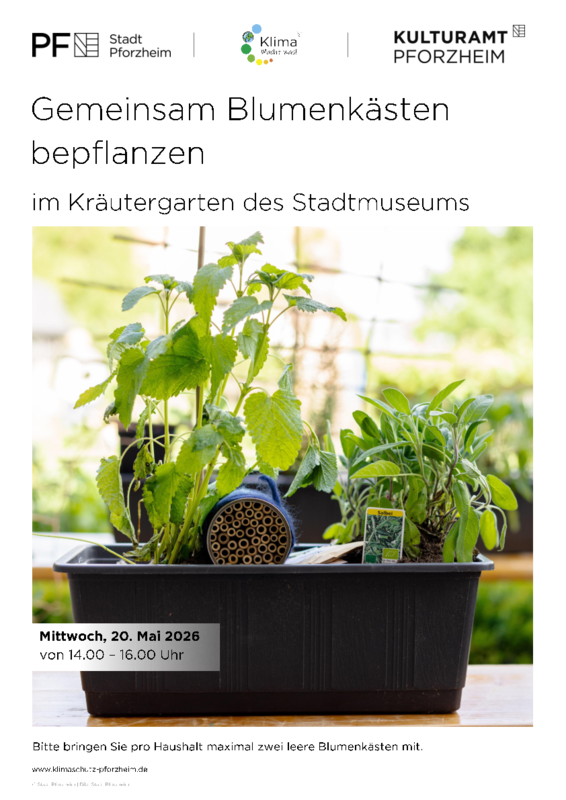 Der Frühling steht vor der Tür und die Natur erwacht aus ihrer Winterruhe. Um den Insekten bei der Nahrungssuche zu helfen, lädt das Amt für Umweltschutz mit dem Stadtmuseum dazu ein, die Balkone und Gärten in Pforzheim zu begrünen. Kommen Sie mit Ihrem leeren Blumenkasten in den Kräutergarten des Stadtmuseums. Dort gibt es Pflanzen und torffreie Erde, gesponsert vom Amt für Umweltschutz. Außerdem werden einfache Rankhilfen für Kletterpflanzen gebastelt. Mehr Grün in der Stadt fördern nicht nur die Artenvielfalt. Auch das Mikroklima der Stadt verbessert sich und senkt die Umgebungstemperatur. Durch einfache Maßnahmen wie diese, trägt jede und jeder etwas dazu bei, Pforzheim insektenfreundlicher und klimaresilienter zu machen.